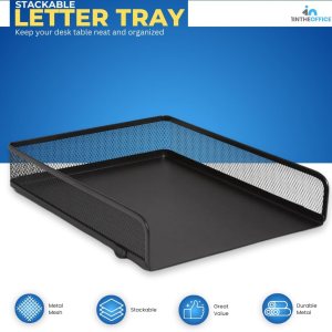 Bandeja de cartas para la organización de la oficina. Los pies entrelazados garantizan un apilamiento seguro de hasta tres bandejas, Los bordes planos y redondeados ofrecen un diseño más elegante. Capacidad de carga: 543 hojas de 19.8 lbs. Papel, Bandeja de papel negra de malla y alambre que añade estilo, eficiencia y productividad a tu escritorio, Las patas de la bandeja evitan resbalones y arañazos cuando se pone en la parte superior del escritorio. No requiere montaje, Cada bandeja de archivos de papel mide 12.5 in de largo x 9.7 in de ancho x 2.3 in de alto y tiene capacidad para papel de hasta 8.5 in x 11.0 in