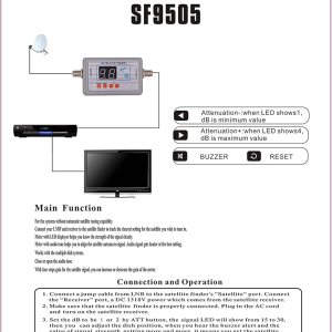 Componentes de alta calidad. Conectores anticorrosión Amplificador integrado que compensa la pérdida de inserción Medidor sensible para uso en línea; tamaño de bolsillo y peso ligero Con zumbador electrónico. Fácil operación, atenuación, tono de audio y retroiluminación Alimentado por el receptor, buena herramienta para campistas. Nota: funciona muy bien con señal de natación Directv HD; utiliza 2 baterías de litio de 1,5 V