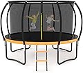 Trampolín de 12 pies/14 pies para niños y adultos – Trampolín recreativo al aire libre con red de cierre, postes curvos y escalera, resistente,