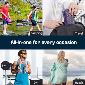 Microfiber, Microfibra de alta calidad: Microfibra ecológica producida sin aditivos nocivos e hipoalergénica. Ultrasuave y duradera para años de uso., Secado rápido y superabsorbente: Esta toalla de microfibra puede contener 4 veces su peso en agua y puede secarse hasta 10 veces más rápido que las toallas de algodón tradicionales. Olvídate de la horrible toalla de gimnasio., Respetuosa con la piel: material de alta calidad/acabado, las toallas de microfibra se sienten suaves y cómodas en tu piel. Es nuestra toalla de deporte y de viaje diseñada para uso frecuente., Compacta y ligera: Toalla de microfibra para deportes y viajes hecha para ahorrar espacio y para ser más útil para viajar, entrenamiento deportivo profesional, uso diario. Los profesionales la eligen por su tamaño compacto y peso ligero. El peso de la toalla de microfibra seca es 5 veces menor que la toalla normal., Varios tamaños: son excelentes toallas de playa, para mochileros y camping porque tienes ocho opciones de tamaño (12 x 24 pulgadas, 16 x 32 pulgadas, 20 x 40 pulgadas, 24 x 28 pulgadas, 28 x 56 pulgadas, 32 x 64 pulgadas, 36 x 72 pulgadas, 40 x 80 pulgadas) que funcionan para lo que necesitas. También viene con una bolsa de empaque, por lo que si estás en movimiento puedes guardarla sin que todo lo demás en tu bolsa se moje.