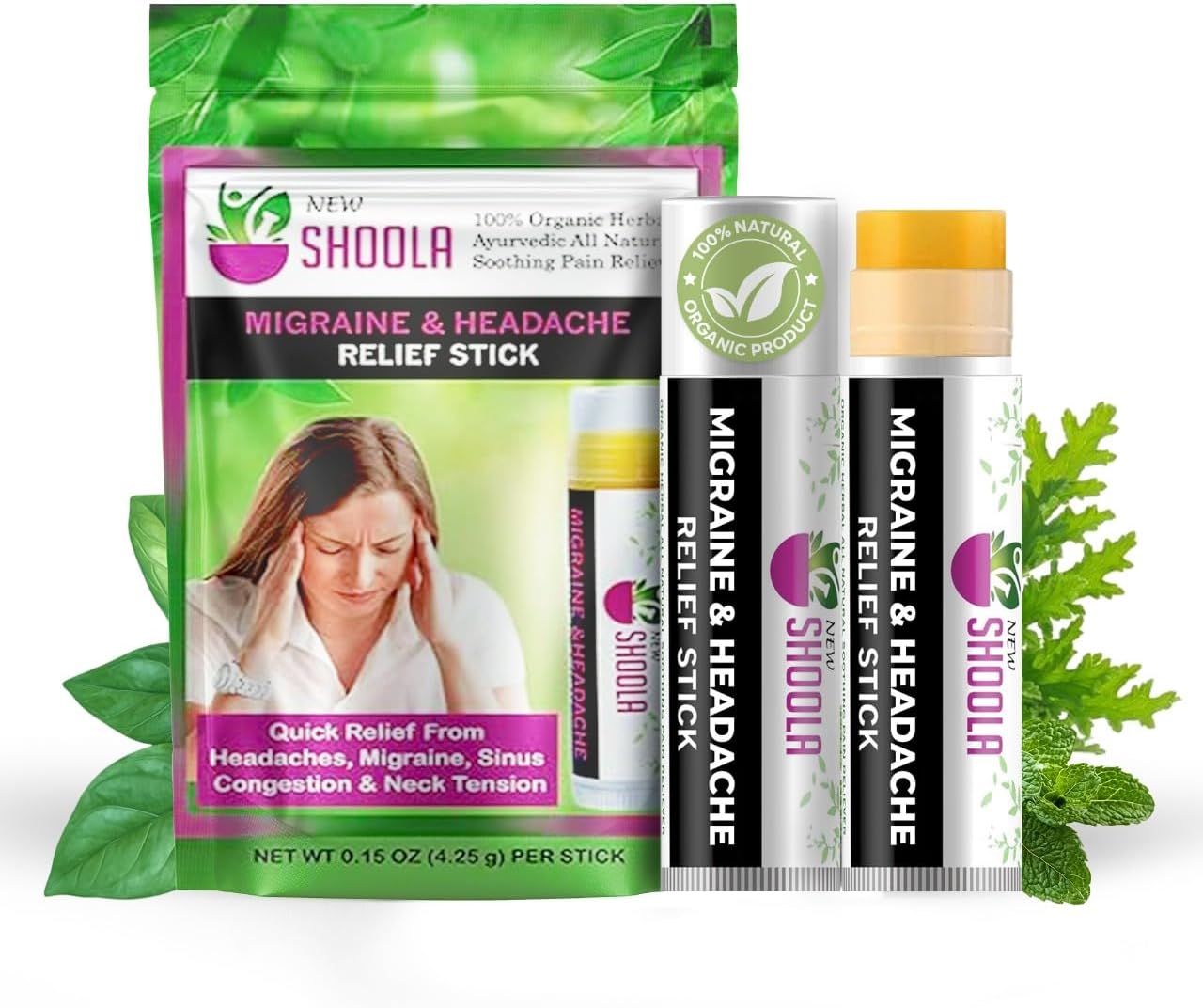 Shoola - Bálsamo de alivio sin contacto, alivio natural del dolor de cabeza y migraña, alivio del dolor ayurvédico a base de hierbas para sienes,