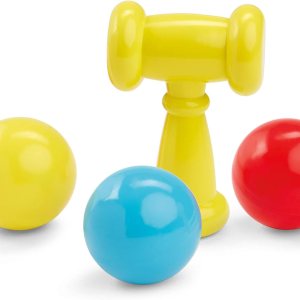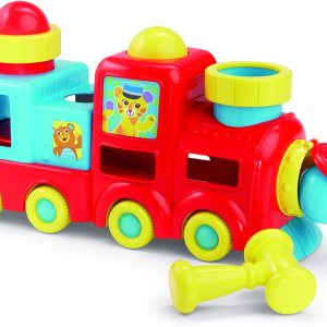 Chugga-chugga, choo-choo Todos a bordo para divertirse. El tren de pelota golpeante de Bruin captará la atención de los bebés y los mantendrá ocupados con un juego de pelota atractivo. El bebé puede usar el mazo suave para golpear las bolas a través de las aberturas del tren y luego abrir la puerta del tren para ver las bolas desplegarse. La colorida acción de tren y pelota fomenta la coordinación ojo-mano y el aprendizaje de causa y efecto mientras se divierte. Las ruedas libres permiten que tu pequeño conduzca el tren por todas partes. El mango de mazo grueso y el tren resistente son fáciles de agarrar y maniobrar para las manos pequeñas para un montón de juego interactivo.