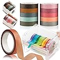 Kalolary 10 Rollos de Cintas de Papel de Enmascarar Coloridas, Juego de Cinta de Enmascarar con Dispensador Cortador de Cinta Washi, Rollo de Cinta