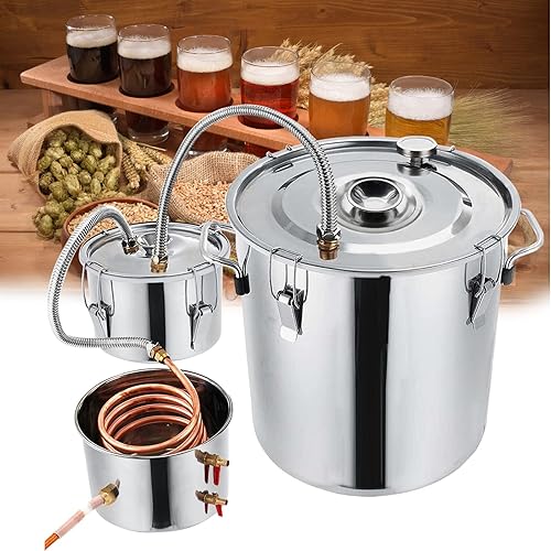 YUEWO 2 ollas de acero inoxidable de 2 galones/10 litros, destilador de alcohol y agua, kit de preparación para el hogar, suministros para hacer