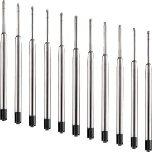 Color: Recambio de tinta negra. Grandes adiciones a tus suministros de escritura. Dimensiones: la longitud del recambio de bolĂgrafo de 3.9 in, punto medio de 0.039 in para una escritura suave. Nota: comprueba el tamaño antes de comprar. Cantidad: paquete de 5 recambios de tinta negra, una gran cantidad de recambios para bolĂgrafos son suficientes para tu uso; puedes compartir con compañeros de clase o amigos. Buena calidad: el cuerpo del recambio está hecho de material metálico, ligero y suave; la tinta se seca rápidamente con un flujo de tinta constante, no se filtra, ayuda a prolongar la vida Ăştil de tu costoso bolĂgrafo favorito. Se adapta a varias ocasiones de escritura: el recambio de bolĂgrafo de metal es adecuado para oficina, negocios, escuela y hogar, etc. Pequeño y portátil, cĂłmodo de llevar. Si combinas con otras marcas de bolĂgrafos, compara cuidadosamente el aspecto y las dimensiones del recambio para que coincida con el recambio original antes de comprar, no podemos garantizar que coincida con los recambios de otras marcas.
