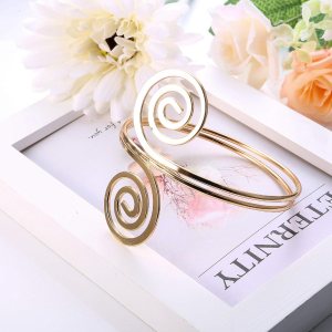 Juego de brazaletes: el paquete incluye 3 pulseras de brazo abierto en tono dorado en 3 estilos, de hoja de laurel y pulsera de brazo de remolino de filigrana, diseño simple y moderno, se combinan libremente para adaptarse a tus necesidades diarias., Material: las pulseras de brazo están hechas con aleación ambiental, sin plomo y sin níquel y sin cadmio, duraderas y cómodas, ligeras para que puedas llevarlas todo el día., Tamaño: diámetro interior de la pulsera de aproximadamente 3.0 in, ligeramente ajustable, adecuado para la mayoría de mujeres y niñas., Ocasión: estas pulseras minimalistas son perfectas para fiestas, bailes, cosplay, desfiles de moda, fotos, disfraces, Halloween, bodas o uso diario. Puede ser el regalo ideal para tu esposa, novia, hija, hermana en el día de San Valentín, aniversario, graduación, cumpleaños y Navidad., Servicio fiable: cuando recibas el producto dentro de los 365 días, si no estás satisfecho con nuestros productos, ponte en contacto con nosotros en cualquier momento, te devolveremos en 24 horas y haremos todo lo posible para hacer las cosas correctas. Esperamos que tengas una agradable compra.