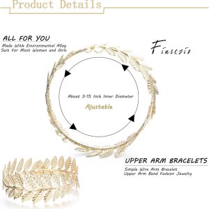 Juego de brazaletes: el paquete incluye 3 pulseras de brazo abierto en tono dorado en 3 estilos, de hoja de laurel y pulsera de brazo de remolino de filigrana, diseño simple y moderno, se combinan libremente para adaptarse a tus necesidades diarias. Material: las pulseras de brazo están hechas con aleación ambiental, sin plomo y sin níquel y sin cadmio, duraderas y cómodas, ligeras para que puedas llevarlas todo el día. Tamaño: diámetro interior de la pulsera de aproximadamente 3.0 in, ligeramente ajustable, adecuado para la mayoría de mujeres y niñas. Ocasión: estas pulseras minimalistas son perfectas para fiestas, bailes, cosplay, desfiles de moda, fotos, disfraces, Halloween, bodas o uso diario. Puede ser el regalo ideal para tu esposa, novia, hija, hermana en el día de San Valentín, aniversario, graduación, cumpleaños y Navidad. Servicio fiable: cuando recibas el producto dentro de los 365 días, si no estás satisfecho con nuestros productos, ponte en contacto con nosotros en cualquier momento, te devolveremos en 24 horas y haremos todo lo posible para hacer las cosas correctas. Esperamos que tengas una agradable compra.