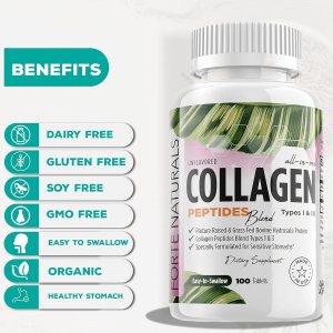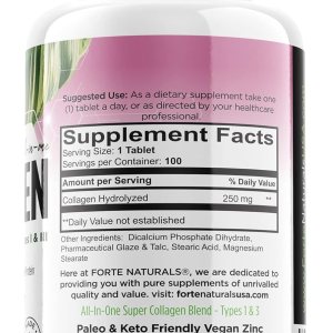 Fabricado en Estados Unidos con colágeno bovino de alta calidad: el polvo de proteína de colágeno múltiple de FORTE NATURALS en forma de píldoras se produce con colágeno alimentado con hierba de primera calidad conocido como colágeno bovino se enorgullece de ser fabricado en los Estados Unidos. FORTE NATURALS también es un orgulloso defensor de familias militares y veteranos, visita nuestra tienda hoy para más detalles. péptidos hidrolizados, Píldoras de colágeno hidrolizado en polvo frente a péptidos de colágeno: las tabletas de colágeno de péptidos de FORTE NATURALS ofrecen un polvo de colágeno hidrolizado saludable en una píldora de colágeno que disuelve rápidamente en lugar de batidos de polvo de péptidos de colágeno que consumen mucho tiempo. Ideal para mantener el cabello, las uñas, la piel y el metabolismo saludables, Sin gluten, sin OMG y orgánico: las píldoras de péptidos hidrolizados de colágeno de FORTE NATURALS contienen 100 tabletas sin sabor de péptidos de hidrolizado de colágeno múltiple. Las pastillas de colágeno fortalecedoras para hombres y mujeres de FORTE NATURALS son siempre probadas en laboratorio sin gluten por terceros, Péptidos de colágeno hidrolizados para mujeres: el colágeno apoya la piel firme juvenil, el cabello grueso y delicioso, las articulaciones saludables sin dolor y las uñas fuertes. FORTE NATURALS – Los péptidos de colágeno hidrolizado + colágeno para mujeres son el mejor suplemento de proteína complejo de colágeno para mujeres. Colageno hidrolizado en polvo pastillas para obtener los máximos beneficios para la salud, Como se ve en la revista FORBES – Las pastillas de péptidos de colágeno FORTE NATURALS han aparecido en la revista FORBES por haber revolucionado la industria de suplementos de colágeno y polvo de proteína. Relleno de péptido de colágeno tipo 1 y 3 y especialmente formulado para estómagos sensibles para garantizar una fácil ingesta diaria