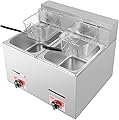 Freidora comercial de doble tanque con 2 cestas y tapas, cada tanque de capacidad óptima de 6 litros/6.34 cuartos de galón, freidora eléctrica
