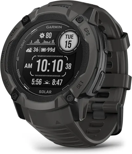 Reloj inteligente GPS audaz y resistente construido según el estándar militar de los Estados Unidos 810 para resistencia térmica, a golpes y al agua, con una gran pantalla cargada por energía solar y una resistente carcasa de polímero de 50 mm Carga solar: la lente Power Glass extiende la vida útil de la batería, produciendo un 50% más de energía que el reloj solar estándar Instinct 2 Duración infinita de la batería en modo reloj inteligente cuando se expone a 3 horas de luz solar directa (50,000 lux) por día Linterna LED integrada con intensidades variables y modos estroboscópicos que te da una mayor visibilidad mientras entrenas por la noche y proporciona una iluminación conveniente cuando la necesites El seguimiento de salud y bienestar 24/7 te ayuda a mantenerte al tanto de tus métricas corporales con frecuencia cardíaca basada en la muñeca, monitoreo avanzado del sueño, seguimiento de la respiración, Pulse Ox y más (este no es un dispositivo médico, y los datos presentados están destinados a ser una estimación cercana de las métricas rastreadas.) Pulse Ox no está disponible en todos los países)
