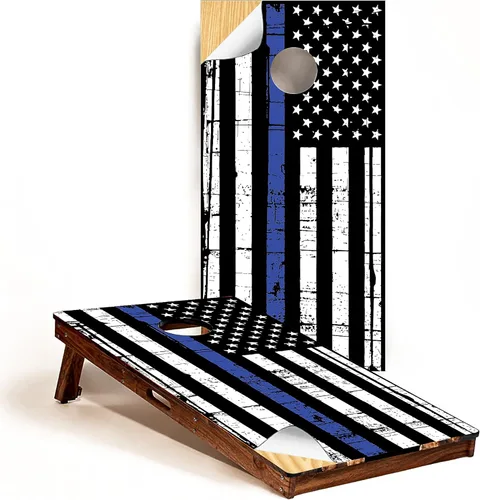 Envolturas de cornhole de vinilo: ¡personaliza fácilmente cualquier tablero de cornhole! Perfecto para personalizar tu juego de lanzamiento de puf de patio trasero. Muestra tu orgullo patriótico con la calcomanía de vinilo laminada de GRAPHIX EXPRESS con la bandera estadounidense de la policía envejecida. Incluye juego de 2 calcomanías. Tableros no incluidos. Gráficos vívidos: ¡Calcomanías impresas de la más alta calidad! La atención al detalle y la calidad gráfica superior distinguen nuestras cubiertas de cornhole de vinilo con la bandera estadounidense de la policía. Las tintas profesionales Eco-Solventes producen detalles de colores vivos y una durabilidad excepcional. Calcomanías de larga duración: no requiere laca desordenada. Nuestras calcomanías rectangulares de 2 x 4 pies están impresas en un vinilo duradero de 7 años con tecnología de liberación de aire, sin burbujas para una instalación más fácil, luego laminadas para una protección extra resistente a la intemperie y un deslizamiento perfecto cada vez. FÁCIL APLICACIÓN: Aplicar sobre una superficie lisa pintada o no pintada! Limpia la superficie de cualquier polvo o escombros. Despegue la parte posterior del papel. Pegue en la ubicación deseada y escoja la calcomanía hacia abajo. Recorte el orificio central a lo largo del borde de la madera con una navaja o un cuchillo de hobby. Calidad superior: en GRAPHIX EXPRESS, estamos orgullosos de proporcionarte solo las mejores calcomanías diseñadas para adaptarse a cualquier tablero de maíz regulado estándar. Cada una de nuestras pieles gráficas premium viene laminada para una protección superior contra los elementos y está lista para aplicar. Elige tus diseños favoritos para añadir un toque personalizado a tu juego de tableros de cornhole