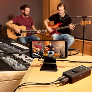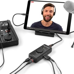 Interfaz de audio con 2 canales para iPhone, iPad, Android y Mac y computadora. 2 entradas RCA de nivel de línea para conectar mezcladores, teclados y más. Combo de conector para micrófono y auriculares: monitorea en tiempo real y habla sobre una mezcla. Incluye cables Lightning, USB-C y USB-A. Funciona con todas tus aplicaciones favoritas de grabación, video y streaming.