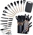 Juego de utensilios de cocina y cuchillos, juego de cuchillos de cocina 19 en 1, incluye 11 utensilios de cocina de silicona, 5 cuchillos de chef