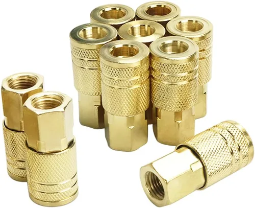 Incluye un sistema de conexión fácil: 10 acopladores de aire de rosca hembra NPT de 1/4 de pulgada, el protector de manga ayuda a reducir el riesgo de desconexiones accidentales y protege la manga del acoplador Tamaño del producto: todos los tamaños de flujo básico de 1/4 pulgadas (tamaño del cuerpo) con rosca hembra NPT de 1/4 pulgadas de acopladores rápidos de aire, intercambiables con la mayoría de los fabricantes, presión máxima de trabajo de 300 psi Excelente calidad: diseño de construcción de acero sólido, chapado en latón para resistencia a la corrosión y uso de una vida útil más larga, acoplador rápido de aire intercambiable industrial/estilo M para facilitar la combinación de todos los tapones / tetinas industriales / estilo M con otros fabricantes 【Ocasión de uso】Todos los acopladores se desconectan rápida y de forma segura para lugares de trabajo profesionales, en tiendas de automóviles o en casa en el garaje para manguera de aire, compresor de aire, herramientas de aire, clavador de aire, pistola de soplado de aire, lavadora a presión Todos los acopladores vienen con garantía limitada de por vida del fabricante