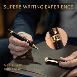 Bolígrafos de diseño moderno de alta calidad: el nuevo bolígrafo de Keyzor está finamente empaquetado con laca de alta calidad y se lleva a cabo con prueba de pulverización de sal durante 48 horas, lo que lo hace más duradero y apenas se despega. Diseñado con acabado en oro de 24 quilates, ofrece un aspecto atemporal y una sensación de lujo., Experiencia de escritura inigualable: utilizamos un sistema de tinta de punta fina de 0.028 in de SCHMIDT, que ha ganado reconocimiento mundial en el instrumento de escritura. Ofrece un flujo de escritura más suave y consistente sin manchas ni manchas. Un recambio de repuesto SCHMIDT también está empaquetado en un sobre de lujo para ti., Exquisita idea de regalo: el bolígrafo de lujo se presenta en una delicada caja hecha a mano. Con su aspecto discreto pero lujoso, el juego de bolígrafos seguramente será un gran regalo para cumpleaños, aniversario y Navidad. Ya sea que se lo des a tus hijos, jefe, maestro o amado, quedarán impresionados a primera vista., Cómodo de sostener: nuestro enfoque para diseñar el bonito bolígrafo de metal Keyzor logra lograr el equilibrio perfecto entre sentirse sustancial de sostener, pero fácil de escribir durante tiempos prolongados. El cuerpo de 1.3 onzas pesa adecuadamente para proporcionar al escritor una inscripción constante y consistente en cualquier documentación., Sin preocupaciones: todos nuestros bolígrafos ejecutivos están respaldados por un fuerte soporte del fabricante. Tu compra está protegida por la garantía oficial de Keyzor. En caso de que tengas algún problema con el producto, estamos aquí para hacer las cosas bien. Tu satisfacción es siempre lo que más nos importa.
