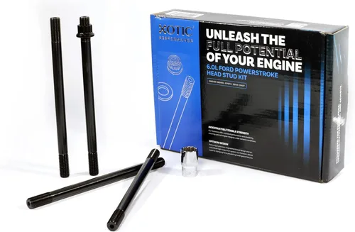 REEMPLAZO DE AJUSTE DIRECTO - Diseñado específicamente para varios motores diésel Ford Power Stroke de 6.0 L, este kit está diseñado para mejorar el rendimiento de tu vehículo. Asegure la compatibilidad perfecta consultando la pestaña de compatibilidad del vehículo arriba. ULTRA RESISTENCIA - Fabricados con material XOTIC 7200, estos espárragos de culata ofrecen una resistencia a la tracción superior de 220,000 psi, muy por encima de la del acero cromoly estándar 8740. Las roscas se enrollan después del tratamiento térmico para optimizar la resistencia a la fatiga, asegurando una fuerza de sujeción suficiente que evita que las culatas del cilindro se levanten. INSTALACIÓN FÁCIL - El kit cuenta con extremos de espárragos brocados para una instalación sencilla y una remoción más fácil de la culata. Un manual incluido con diagramas claros simplifica el proceso, mientras que el diseño de los pernos ayuda a mantener el sello del cilindro en condiciones de turbo de alta presión extrema, superando con creces las fuerzas de sujeción de los pernos de culata Ford estándar. FALLA REDUCIDA DE LA JUNTA DE CULATA - La actualización de los pernos de culata de fábrica a estos espárragos de culata de alta calidad reduce significativamente el riesgo de fallas de la junta de culata, particularmente en aplicaciones de alto rendimiento o turboalimentadas. KIT COMPLETO INCLUYE - El paquete contiene 20 pernos de cabeza, 20 tuercas, 1 zócalo y 20 arandelas paralelas endurecidas, junto con lubricante para el ensamblaje de sujetadores y un manual de instrucciones. Un acabado de óxido negro en todas las piezas protege contra el desgaste, mientras que las arandelas garantizan una distribución uniforme de la carga y lecturas precisas del par para una instalación óptima.