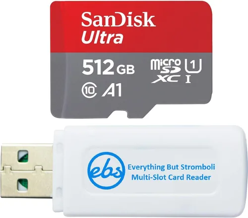 El paquete incluye (1) tarjeta de memoria SanDisk Micro Ultra de 512 GB para Nintendo OLED y (1) lector de tarjetas multiranura Everything But Stromboli, incluye ranuras SD, Micro SD (TF), M2 y MS para una fácil transferencia Almacenamiento de juegos de tarjetas de memoria compatible con Nintendo Switch OLED, Nintendo Switch y Nintendo Switch Lite Velocidades de lectura de hasta 120 mb/s; nominal A1 para rendimiento de aplicación y clase de velocidad UHS U1 y clase de velocidad 10 para grabación y reproducción de video Full HD Este accesorio esencial para juegos cuenta con calificaciones de velocidad de clase 10 para cargar tus juegos, capturar capturas de pantalla o jugar con amigos Las tarjetas de memoria SanDisk son a prueba de golpes, a prueba de temperatura, impermeables y a prueba de rayos X