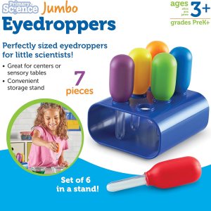 Los niños pueden divertirse experimentar con causa y efecto, mientras que la construcción de habilidades motoras, Introducir a los jóvenes estudiantes real herramientas de la ciencia, el tamaño perfecto para toda una mano, Uso eyedroppers en una mesa de centro de ciencia o sensorial para la diversión y el aprendizaje práctico, Juego de 6 colores Droppers almacena verticalmente en un cómodo soporte, Soporte Medidas 4 3/4 «L x 4 ½» W x 2 1/4 «H», Parte de la línea principal de la ciencia que los niños descubrir, explorar, y experimentar con seguro y divertido, productos que fomentan una Love de la ciencia temprana y ayuda a fomentar el desarrollo de habilidades tallo, Ideal para edades 3 +