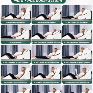 Mientras que otras almohadas de cuña de cama son demasiado firmes e incómodas, no alivian el dolor después de la cirugía o se deslizan hacia abajo, por lo que es imposible conciliar el sueño o relajarse en una posición sin dolor, el juego de 4 almohadas ortopédicas de cuña Lunix LX5 está hecho de espuma viscoelástica 45D de alta calidad para adaptarse rápidamente a la forma y altura de tu cuerpo. La exclusiva correa de velcro de la almohada para la cabeza evita el deslizamiento y proporciona horas de comodidad. ¡Los niños también pueden disfrutarlo!, Te mereces días sin dolor y relajantes! Si quieres recuperarte más rápido después de una cirugía de hombro, cadera o manguito rotador, deshacerte del dolor de espalda baja, espasmos musculares o ronquidos, y reducir el reflujo ácido o ERGE, Lunix ha diseñado las almohadas ortopédicas de cuña más efectivas. No importa si quieres dormir, leer o simplemente ver la televisión más cómodamente, sentirás las maravillas de una alineación natural de la columna vertebral vertical en tu cuello apretado, espalda baja o caderas. También incluye un paquete de gel para terapia de calor y frío., ¡Nuestra misión es mejorar su salud! Las almohadas de cuña reclinable LX5 premium han sido probadas después de la cirugía por más de 500 voluntarios para garantizar una posición cómoda reclinada. Nuestra almohada para la cabeza delgada (2.9 pulgadas) libera presión en el cuello y el reposa rodilla superior permite la relajación de todo el cuerpo. El paquete caliente/frío incluido puede aliviar el dolor en cualquier parte del cuerpo. Olvídese del dolor de artritis al instante: «¡Estas almohadas son adictivas!», ¡El regalo perfecto para un ser querido! Si estás buscando un gran regalo que tenga un factor que mejore la vida, entonces te encantará nuestra almohada de espuma viscoelástica para cama. El diseño 100% ajustable es adecuado para mujeres y hombres de cualquier altura y la cubierta orgánica es muy suave en tu piel. Se puede utilizar en la cama, en el sofá y en el suelo sin deslizarse hacia abajo. Incluimos 2 bolsas de vacío para que el almacenamiento no tenga complicaciones., ¡Te mereces solo la mejor calidad! Somos una empresa familiar con sede en CA y nos enorgullecemos de proporcionar solo productos probados y de primera calidad con un año de garantía y un increíble servicio al cliente con sede en Estados Unidos para nuestra comunidad de estadounidenses trabajadores. Hemos diseñado el soporte de respaldo de la cama con atención al detalle para traer alivio del dolor y relajación a tu vida diaria.