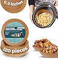 120 forros para freidora de aire marrón de 6.3 pulgadas, forros de papel pergamino para freidora de aire, antiadherentes, resistentes al aceite, de