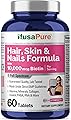 NusaPure Fórmula para cabello, piel y uñas con 10,000 mcg de biotina por porción, 60 tabletas vegetarianas sin OMG