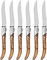 LUVCOSY Juego de cuchillos para carne estilo Laguiole de 6, juego de cuchillos para carne sin dientes con mango de madera de olivo, cuchillos