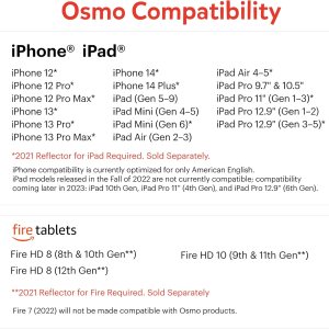 OSMO IS MAGIC: juegos de aprendizaje llenos de diversión y galardonados. Los niños interactúan con piezas reales de mano y un iPad o tableta Fire, dando vida a las piezas y acciones de juego de un niño (no es necesario WiFi para jugar). Base Osmo y iPad/Fire Tablet no incluidos, necesario para jugar. Enseñanza: utiliza bloques físicos prácticos, comandos de codificación, para controlar al personaje Awbie en una aventura llena de diversión (Coding Awbie), una introducción a la codificación. Utiliza bloques de codificación para aprender el lado creativo de la codificación mientras desarrolla un oído para el ritmo, la melodía y la armonía. Haz que tu ritmo cobre vida, aprende patrones y bucles con más de 300 sonidos musicales (Coding Jam). Comparte un mermelada compuesta con familiares, amigos y la comunidad Jam. Resuelve rompecabezas avanzados de codificación lado a lado solo o con otros, jugando a su propio nivel, utilizando trabajo en equipo y estrategia para desbloquear nuevos mundos y codificar más de 60 rompecabezas (Coding Duo). Habilidades aprendidas: lógica, fundamentos de codificación, conceptos básicos de programación, resolver rompecabezas de codificación, trabajo en equipo, escucha, pensamiento crítico, observación, resolución de problemas creativos, creación de música y reconocimiento de patrones. Osmo ve y reacciona al movimiento de la vida real. Dirigido a los niños y al amor por el aprendizaje. Edad y capacidad: a partir de 5 a 10 años. Los juegos están diseñados para niveles principiantes a expertos. Osmo permite la continuación del aprendizaje. El audio en tiempo real y la retroalimentación visual permiten a los niños aprender a través de la experimentación en un entorno sin estrés. Contenido de la caja: 31 bloques de codificación tangibles, incluyendo: caminar, saltar, mano, magia, descanso, cuantificadores (números), repetición, subrutinas, almacenamiento apilable para piezas de juego, 3 aplicaciones de juego: Coding Awbie, Coding Jam y Coding Duo. Compatibilidad para iPad y tableta de fuego: iPad compatible: todos los iPads excepto la generación 1-4 y iPad Mini 1. iPad Reflector 2021 requerido para el iPad Mini 6, iPad Air 4-5, iPad Pro de 11 pulgadas y iPad Pro de 12.9 pulgadas 3-5. La versión mínima de iOS necesaria es iOS 11. Tabletas Fire compatibles: Fire 7 (9ª generación), Fire HD 8 (8ª y 10ª generación) y Fire HD 10 (9ª y 11ª generación). Reflector de fuego 2021, se vende por separado, requerido para: Fire HD 8 (10ª generación) y Fire HD 10 (11ª generación). La versión mínima de FireOS necesaria es 7.