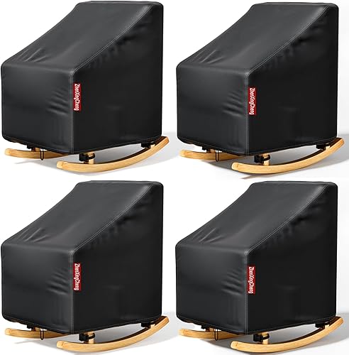 Paquete de 4 fundas para sillas de patio, fundas para muebles de exterior con tira impermeable y se adapta como funda de asiento profundo de césped fabricado en tela Oxford