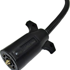 TRC-14-7 es un cable de remolque conductor de calibre 14 7 es lo suficientemente fuerte como para soportar algunos de los entornos exteriores más extremos. Este cable de uso general cuenta con siete conductores de cobre 19/27 codificados por colores rodeados por un aislamiento de PVC y una chaqueta que permite una excelente protección contra condiciones climáticas extremas, daños por grasa y aceite, y temperaturas que van desde -58.0 °F a 176.0 °F. Nuestro cable de remolque de calibre 14 7 también tiene una opción de cubierta TPE para situaciones que requieren resistencia adicional contra temperaturas frías. Si bien existe una multitud de aplicaciones al aire libre para nuestro TRC-14-7, se utiliza más comúnmente cuando se conecta remolques y otros equipos a camiones. Especificaciones del conector: conectores de remolque Pollak RV. Categoría: Conectores de remolque Fabricante: Pollak. # de Contactos: 7. Tipo de componente: enchufe. Tensión nominal: 12 – 24 V. Corriente nominal: 30 A. Material: nailon. Negro a prueba de corrosión, nylon lleno de vidrio