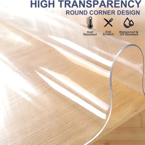 A. Materiales ecológicos: utiliza la nueva versión mejorada de material de PVC grueso ecológico, sin BPA. Protege tu mesa, escritorio, mantel y muebles contra arañazos, rozaduras, manchas, derrames, etc. Ideal para escritorio de muebles de madera, mesa de comedor, tapete protector de mesa de jardín, mesa de madera, vidrio, mármol, parte superior de acero inoxidable, escritorio de oficina, escritorios de escritura, mesa de café y auxiliar, banco de TV, tocador y mesa de pecho, mesita de noche, encimera, suelo duro, alfombrilla de alimentación para mascotas, alfombrilla de silla para madera dura, etc., B. Duradero, lavable, impermeable y resistente al calor, 0.059 in de grosor, resistente, resistencia al calor hasta 176 °F. Úsalo como camino de mesa o tapete de escritorio, para proteger mejor tu costoso tapete de madera, vidrio, granito, mármol, o úsalo como computadora de oficina o escritorio de escritura, almohadilla transparente para barra de café o mesa de comedor de pub, cocina, forro de muebles contra arañazos, rozaduras, manchas de aceite, derrames de café, quemaduras de calefacción; simplemente limpia este mantel de PVC con un paño húmedo que puede eliminar todo el desorden de su superficie, C. Varios tamaños y disponibles y cuadrados, redondos, rectangulares para tu elección. Color transparente, mide el tamaño exacto de ancho y longitud en la superficie de tu mesa o pantalla de muebles de madera, suelo, armario, encimera de granito para cubierta de plástico transparente, protector de mesa de computadora de trabajo y necesidades de almohadilla de camino de mesa, tapete de mesa de billar, encimera de cocina y bar, escritorios de mesa de teca, tapete de escritorio, mesa de comedor, mesa de conferencias, mesa de jardín, patio mesa, mesa de boda, Mesa de banquete, mesa de picnic, D. Fácil de cortar para adaptar: puedes marcar el tamaño exacto con un lápiz, y luego utilizar un cuchillo afilado o tijeras para cortar. Y también puedes cortar un mantel grande en dos o más manteles pequeños como necesites, siempre que el tamaño requerido se mida con precisión. Nota: Reservamos un poco más que el tamaño real para el margen de encogimiento. No es un problema de tamaño cuando no es la medida precisa como se anuncia. No dudes en ponerte en contacto con nosotros si tienes alguna pregunta o necesidad., E. Protección: este protector de mesa transparente es completamente transparente, lo que te permite mostrar la belleza de tu mesa. También protege tus muebles de arañazos, rozaduras, manchas, derrames, daños. Ideal para todos los muebles como mesas redondas, mesas de comedor, cocina, escritorios de oficina, banco de TV, mesitas de noche, escritorios de madera, mesa de jardín, mesa de patio, mesa de conferencias, mesa de cristal de mármol, alfombrilla de alimentación de mascotas, alfombrilla de silla, etc.