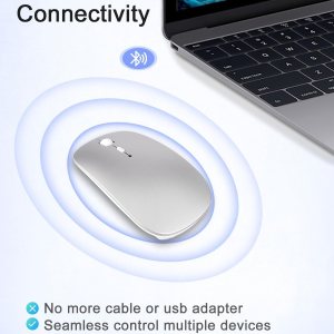 Amplia compatibilidad: compatible con Windows, iPad / iPhone (iOS 13.1.2 y versión posterior), Mac OS X (no para Mac OS 10.13.3 y sistema Mojave), Android y Linux.Macbook, Tablet, Lenovo, Asus, HP, Surface, etc. Si utilizas mouse inalámbrico en iPad/iPhone, actualiza iOS a 13 o superior… Si no conectas el mouse, consulta nuestra página de detalles «Preguntas y respuestas» Conexión Bluetooth: este mouse inalámbrico Bluetooth se adapta a Bluetooth 4.0, fácil de emparejar y conectar rápidamente. No se necesita más puerto o receptor, simplemente abre el Bluetooth en el dispositivo y conéctalo, conecta automáticamente cada vez cuando abras tu computadora (recomendamos desconectar otros dispositivos Bluetooth antes de conectar el mouse) Mouse silencioso recargable: el clic de botón apenas es audible, este mouse inalámbrico silencioso reducirá el ruido hasta un 90%. Batería de iones de litio integrada, una vez completamente de 2 a 4 horas de carga, funciona en 3 a 4 semanas. (El ratón entra en modo de suspensión después de cinco minutos, y luego tienes que volver a conectarlo cada vez? -No! Por favor, no utilices el modo de ahorro de energía de la computadora, necesitas permitir que el dispositivo se despierte) La batería del mouse puede agotarse debido al transporte a largo plazo, carga el mouse después de recibirlo. Con 3 DPI ajustables: DPI800/1200/1600, puedes cambiar el DPI según tus diferentes necesidades. 1000 es territorio de ratón de oficina. Este mouse Bluetooth utiliza chips ópticos de alto rendimiento, que funcionarán más rápido y con más precisión que el mouse tradicional. Puedes hacer que tu trabajo sea más eficiente y ahorrar tiempo, mouse ideal para la oficina, el hogar y el ocio Servicio fiable de por vida: cable de carga incluido. Soporte técnico y servicio de por vida. Si encuentras que este mouse inalámbrico Bluetooth no es tan satisfactorio o tienes alguna pregunta sobre cómo utilizar el mouse, simplemente ponte en contacto con nosotros para una solución. Por favor, danos una oportunidad antes de comentar. Nuestro objetivo es ofrecer tu servicio al cliente más cómodo.