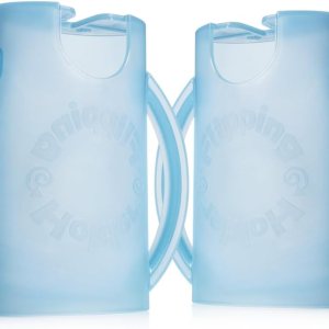 Dos unidades de soportes para mezclar, perfectos para viajar o alimentarse sobre la marcha. El recipiente es un plástico duro libre de BPA que evita que se apriete., Uso vertical para bloquear en bolsas de alimentos, voltear para sostener bolsas de jugo/cajas, Se bloquea de forma segura en todas las principales marcas de bolsas de comida para bebés, y la mayoría de marcas de bolsas para salsa de manzana y yogur., Se puede usar como un recipiente para cajas de jugos y paquetes de jugo sin complicaciones., Fácil de usar, asas cerradas para atar, parte inferior abierta para la asistencia de los padres.