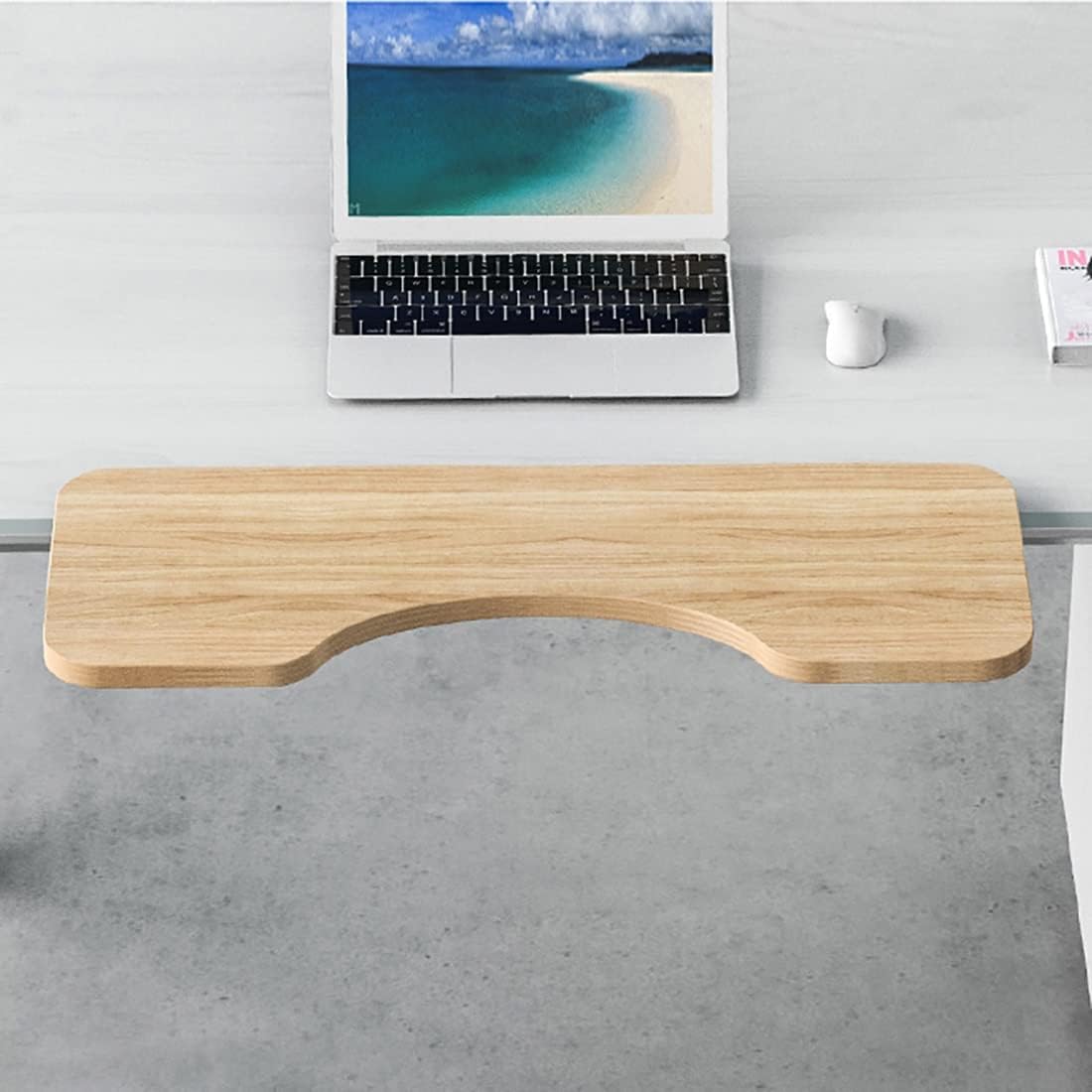 V3VOGUE Bandeja ergonómica para teclado de madera, estantes de almacenamiento debajo del escritorio, cajón de teclado fácil de deslizar con riel de