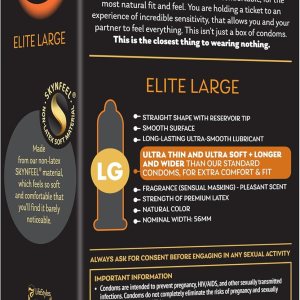 SKYN es el primer condón de alta calidad hecho de poliisopreno: un material cientÃficamente formulado sin látex que ofrece la máxima sensibilidad que es lo más parecido a usar nada. Tamaño grande para el hombre que necesita un ajuste más grande y cómodo. El material de poliisopreno proporciona una sensación más suave y natural que el látex que está clÃnicamente probado para mejorar la sensación. Combina la fuerza del látex de alta calidad con la sensibilidad de un condón ultrafino para esa sensación de piel a cielo. Ideal para personas con alergias al látex o sensibilidad al látex. Lubricante ultra suave de larga duración que mejora la experiencia. El embalaje puede variar del de las imágenes.