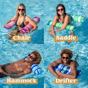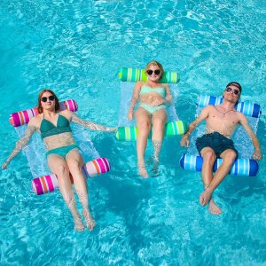 Gran valor. Incluye: 3 hamacas inflables para piscina con tres colores (azul, verde, morado), Calidad excelente. Producto fabricado con tela Oxford gruesa, malla suave, duradero y resistente al desgarro. Puede contener 1 adulto., Amplio uso. Esta hamaca de piscina es fácil de usar y se puede convertir en cualquier uso que necesites. Por ejemplo, puedes convertirla en una hamaca para tomar un sol y relajarte en el complejo de playa., Diversión sin fin. Elige entre los colores que te gustan a ti y a tus amigos o familiares y disfruta de diversión en la piscina o playa. Fácil de distinguir el tuyo por tener un color único., Satisfacción del cliente. Proporcionar una experiencia de satisfacción al 100% es nuestra principal prioridad para nuestros clientes. No dudes en enviarnos un mensaje a través de «contactar a los vendedores» si los productos no cumplen con tus expectativas. Las celebraciones comienzan en JOYIN!