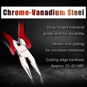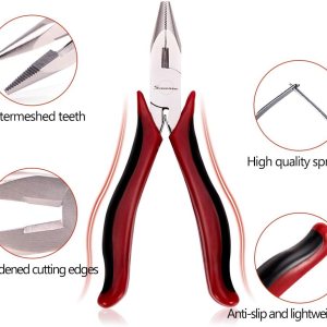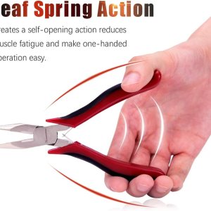 Uso: Capacidad de corte: alambre de cobre de 0.079Ā in, alambre de hierro de 0.063Ā in, alambre duro de 0.051Ā in. Las mandĆbulas serradas proporcionarĆ”n la mĆ”xima fuerza de agarre para los usuarios. Se puede utilizar para cortar y doblar cables blandos como alambre de hierro, alambre de aluminio, alambre de aleación, bridas y cuerdas de guitarra, fabricación de joyas, artes y manualidades, trabajos mecĆ”nicos y otros trabajos de pasatiempo., DiseƱo: la construcción Ćŗnica de la junta de la caja es mĆ”s estable para evitar que se deslice. Mangos bicolor de diseƱo ergonómico para un agarre antideslizante y cómodo. El material PP no solo es ligero, sino tambiĆ©n resistente a la corrosión. La acción de resorte de doble hoja reduce la fatiga de la mano y la muƱeca para un fĆ”cil manejo con una sola mano., ćMaterialćHecho de acero al cromo vanadio de alta calidad. Acero forjado y tratado con calor para una resistencia y durabilidad generales, el chapado adicional de nĆquel y hierro mejora la resistencia a la corrosión de la superficie y prolonga eficazmente la vida Ćŗtil de los alicates., Dimensiones: 4.843Ā in de longitud en total. Dureza del borde de corte endurecido por inducción: aprox. 55-63 HRC para un rendimiento superior., ćAtención al clienteć respaldado por la garantĆa de por vida Speedwox. Valoramos cada comentario de los clientes, siempre amigable servicio al cliente detrĆ”s de los productos Speedwox.