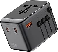 Adaptador de viaje universal, adaptador de enchufe de viaje europeo GaN todo en uno, PD de 65 W de carga rápida, 3 tipos C y 1 adaptador de viaje
