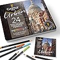 Castle Art Supplies - Juego de 24 lápices de colores para bocetos urbanos en caja de lata, de calidad premium, núcleos pigmentados suaves, perfecto