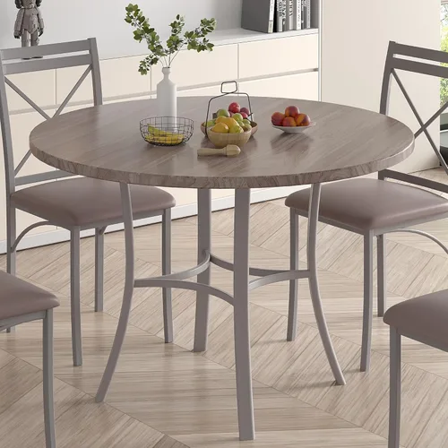 | Nombre del producto | VECELO Mesa de comedor redonda de 36 pulgadas para 4, comedor de grano de madera con marco de metal para cocina, apartamento, hogar, ahorro de espacio, gris elegante |