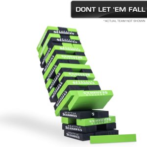 Representa a tu equipo favorito mientras vas cabeza a cabeza (o bloque a bloque) con amigos y familiares en este giro de la NFL en el clásico juego de apilamiento de mesa, Wild Sports Los juegos de fútbol y los juegos deportivos tienen licencia oficial de la NFL con esquemas de color para cada equipo de la liga., Estos bloques de juegos de mesa, similares a Jenga, están bellamente hechos de madera con un aspecto clásico que captura a tu equipo con la mejor luz., Incluye 54 bloques de juego de la NFL y una tarjeta de apilamiento. Dimensiones de los bloques: 3 x 1 x 0. 5 pulgadas Altura de apilamiento inicial: 9 pulgadas, ¿Buscas cosas divertidas de cueva de hombre o cosas de fútbol para niños? Estos bloques de fútbol profesionales de la NFL son fantásticos regalos para hombres en cualquier época del año.