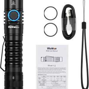 Linterna súper brillante: FC11 utiliza 1* LH351D alto 90 CRI LED (el sol: 100 CRI). Salida hasta 1300 lúmenes (máx. ), distancia del haz de hasta 472.4 ft (157 yardas). La luz de flash LED tiene un color blanco natural con buena reproducción de color, puedes ver cada detalle incluso en completa oscuridad., Dos grupos de interfaz de usuario: el grupo 1 (4+2 modos) tiene eco (2 LM)/bajo (50 lm)/mediano (300 LM)/alto (700 LM) y Turbo oculto (1300 LM) y estroboscópico (1300 lm), doble clic rápido para activar modos Turbo, triple clic rápido para activar los modos estroboscópico, o elige cualquier brillo entre 2 LM y 1300 lúmenes. en el Grupo 2. Son divertidos para jugar y geniales para emergencias. Esta linterna siempre hace un gran trabajo cuando necesites diferentes lúmenes para leer, senderismo, camping, caza, pesca, pasear al perro, reparar, etc., Linterna de carga USB C: FC11 tiene un diseño de puerto USB-C oculto óptimo, cargando a través de cable USB C estándar, se acepta corriente de hasta 1A, se puede cargar a través de su computadora, banco de energía, adaptador de carga de teléfono y automóvil, tarda aproximadamente 4 horas en cargarse completamente., Compacta y de alta fiabilidad: el diseño de la linterna es muy compacto y pequeño, lo que es conveniente para que puedas llevarla a cualquier lugar. Carcasa robusta de aluminio para avión, de primera clase procesada con diseño súper antideslizante y tiene un 200% de la fuerza de una linterna normal. Fuerte tapa trasera magnética: Puede usarlo con las manos libres colocándolo en la campana, en barras de hierro y acero., Nota: Cuando recibas la linterna, el más pequeño de todos, desenrosca la tapa trasera para quitar la película aislante y apretar los dos extremos del tubo del cuerpo de la linterna. Nuestras linternas tienen una garantía de 12 meses, si tienes alguna pregunta, no dudes en ponerte en contacto con nosotros, te daremos una solución 100% satisfactoria.